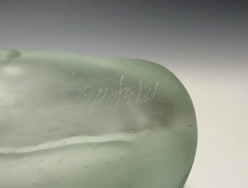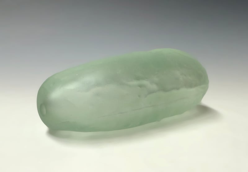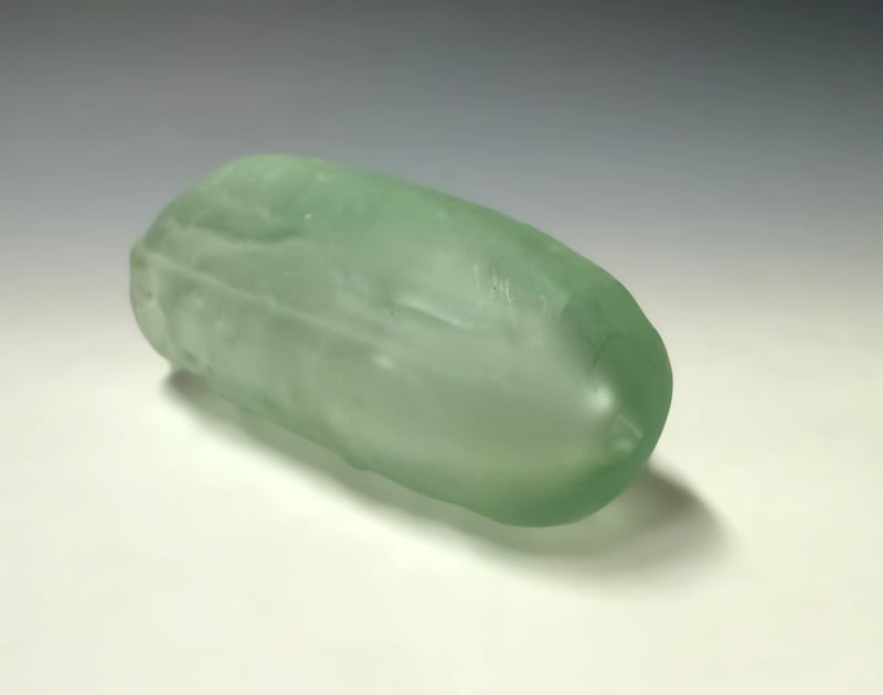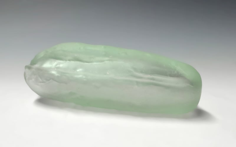 Soft Green sandblasted color. Pickle was bought at Smedley's Deli in Philadelphia right after he had done a workshop there. He dipped in wax and made a mold. Don't know how many were ultimately made, but there are plenty around here. This one's a soft green.